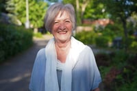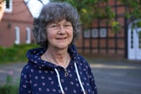 Sie wohnt unter dem Dach der Bauernhauskirche in Russee und genießt es, gleichzeitig städtisch (die Rendsburger Landstraße) und ländlich (das Landschaftsschutzgebiet um den Russee) zu wohnen.